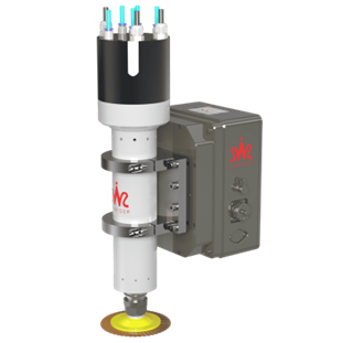 AES(浮动电主轴)是上海赛威德基于EHA(电液执行机构)开发的一体化、高精度、力控砂带磨削装备,可集成在机器人末端,适用于打磨、抛光、去毛刺等不同类型的应用场景。